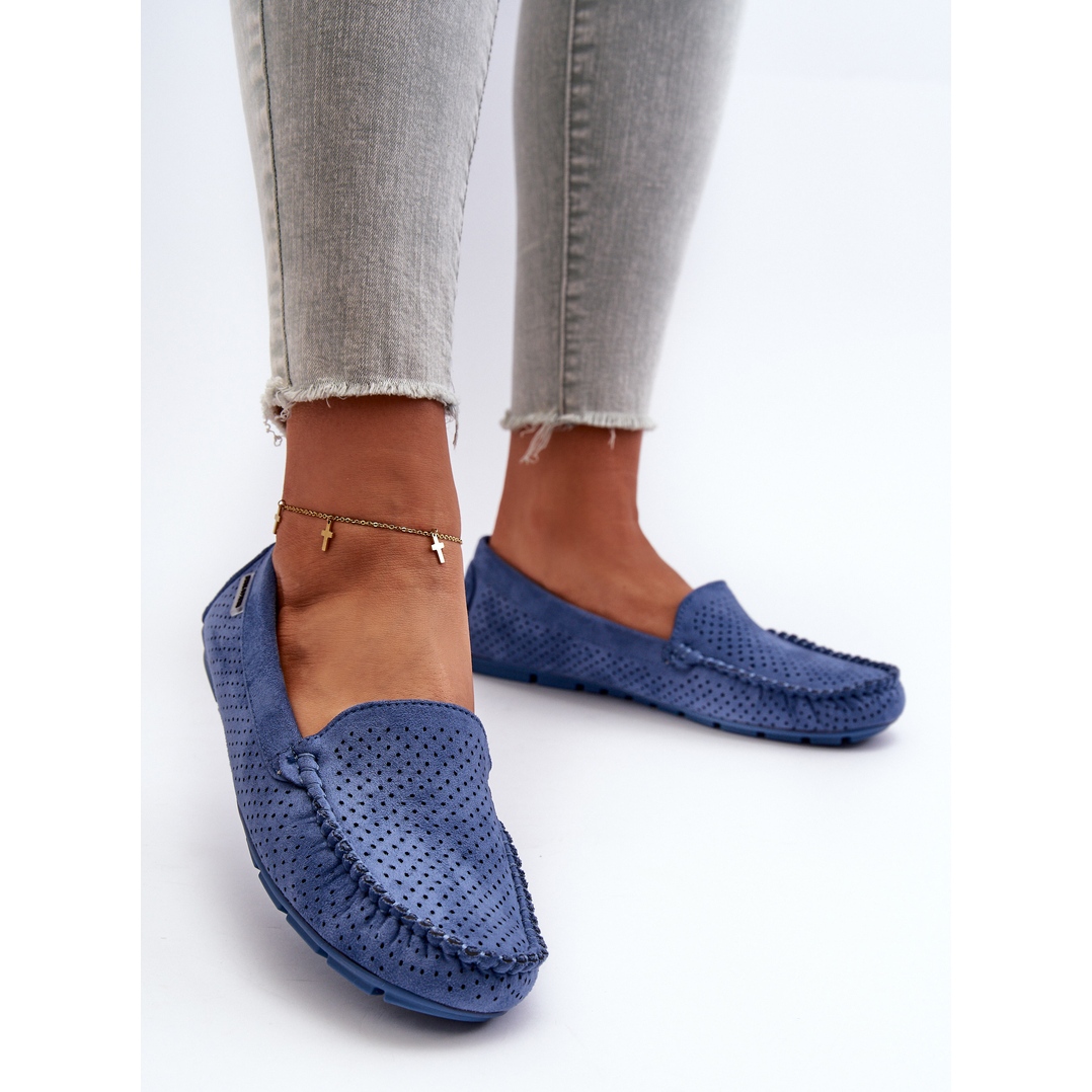 Discover comfort and style in one of the latest models - women's openwork moccasins Rasirna in blue. These elegant shoes are made of high-quality eco-suede, which makes them not only aesthetic but also ecological.
