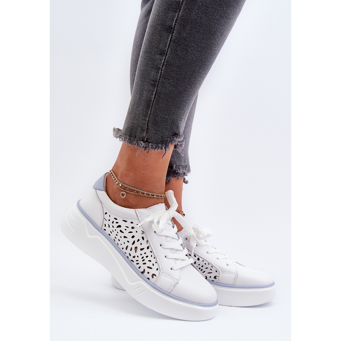 Details: Women's Openwork Sneakers on the Platform Leather White Peilaeno