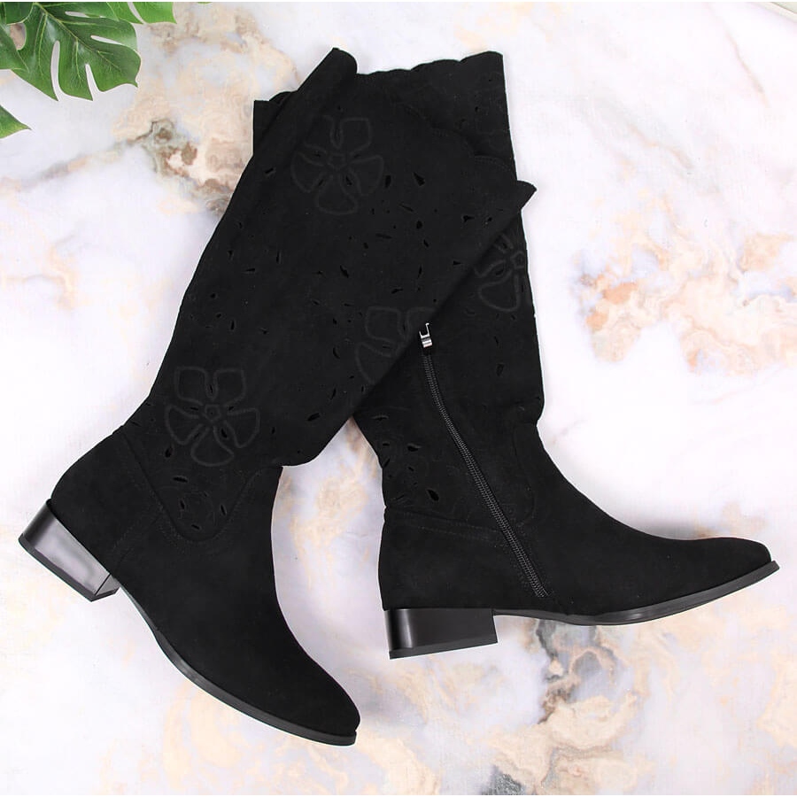 Women's boots openwork suede M. DASZYŃSKI in classic black are a great option for women who value style, comfort and high quality of workmanship. This model is available in standard sizes, which makes it easy to choose the right size that is consistent with the most frequently worn shoes.