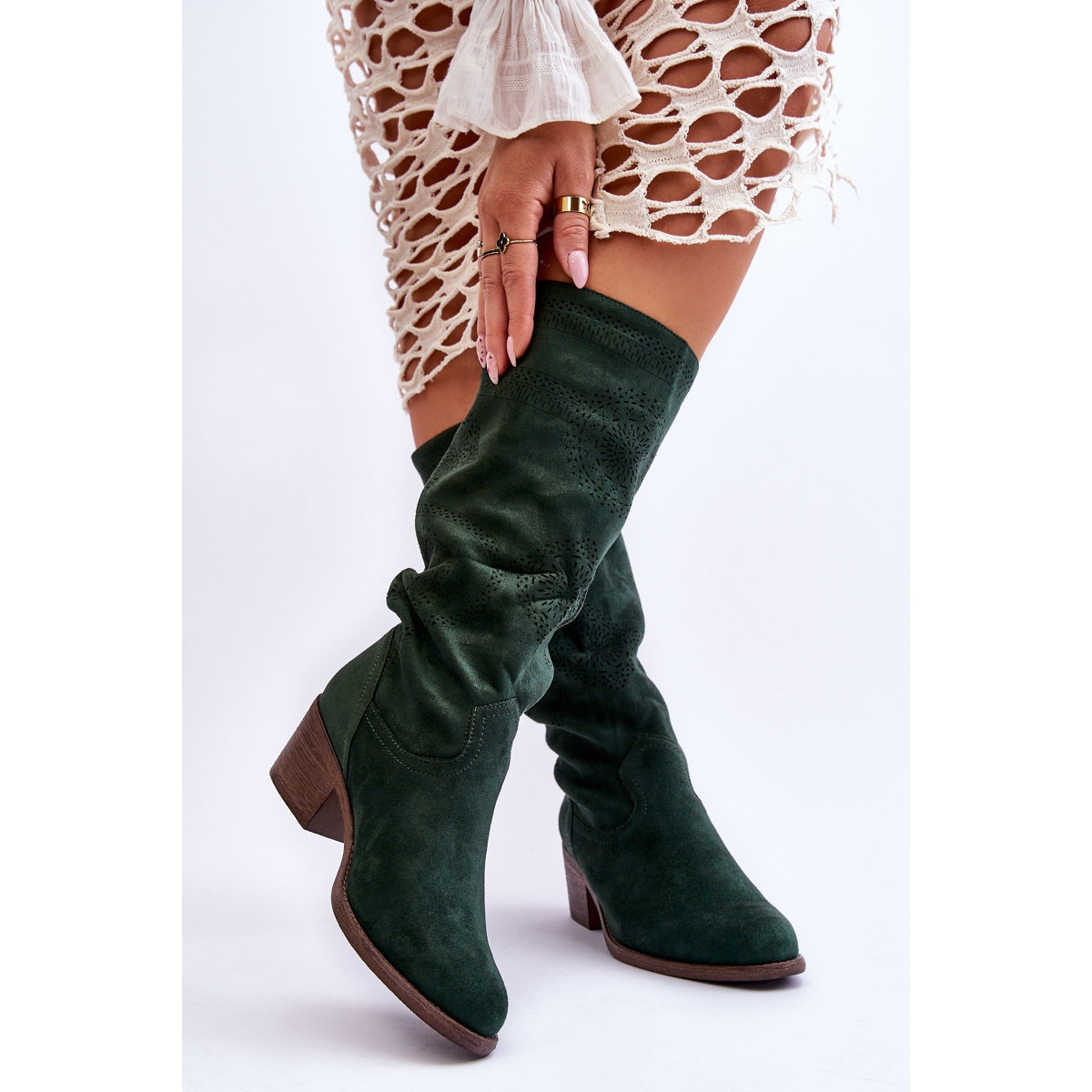 Inna marka Women's Openwork Suede Boots Green Enriss
