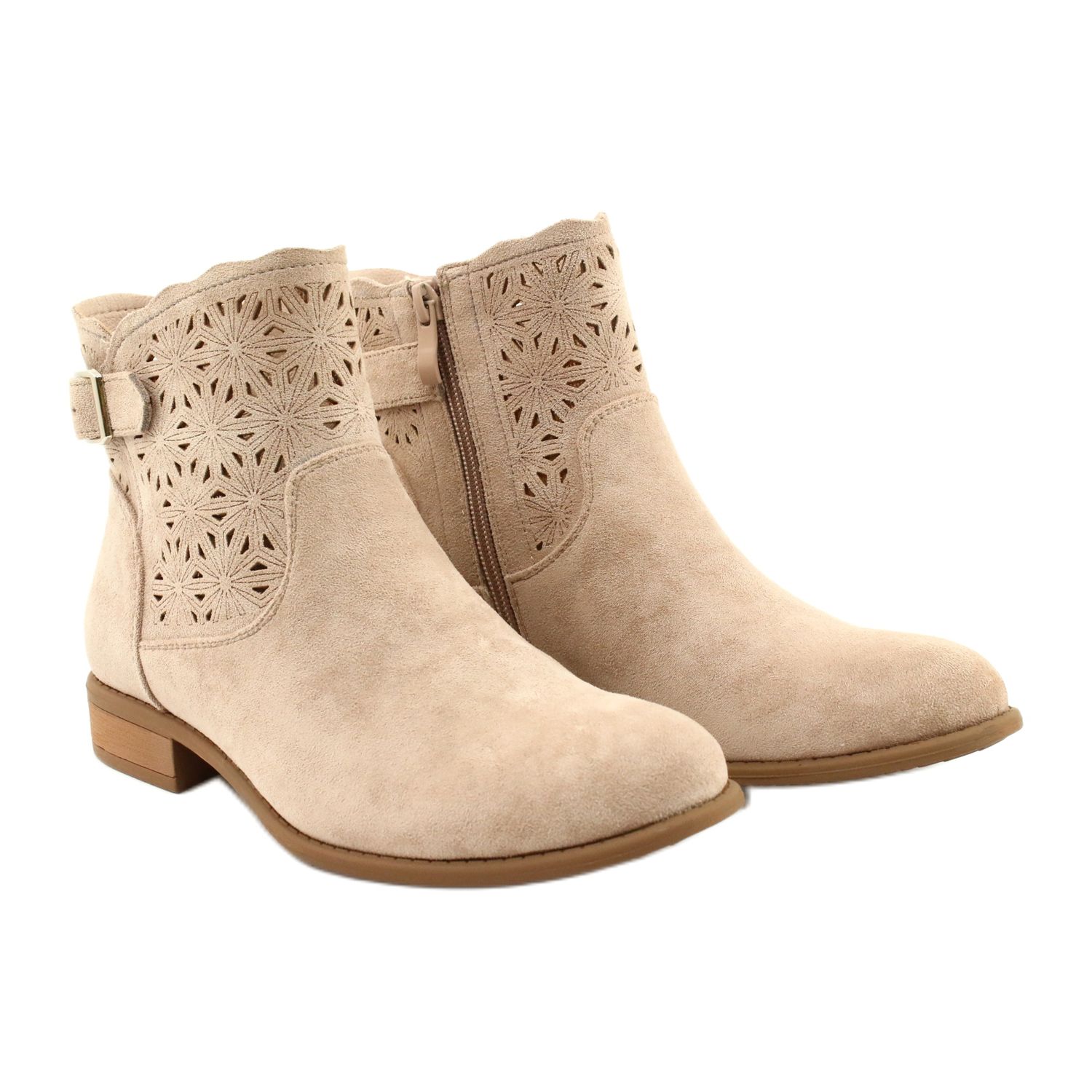 Details: M.Daszyński Women's openwork suede boots SA142-18 beige