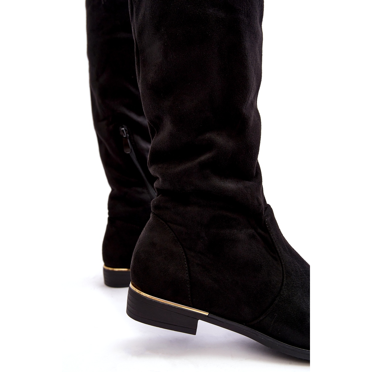 Elegant and practical knee boots made of high quality eco suede. The model inserted with an additional zip fastener ensures quick insertion and a certain fit. The 2.5 cm flat heel gives stability and comfort throughout the day, and the stiffened heel improves the comfort of walking.