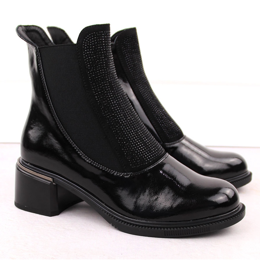 Details: Women's patent leather ankle boots with zircons, black, Vinceza
