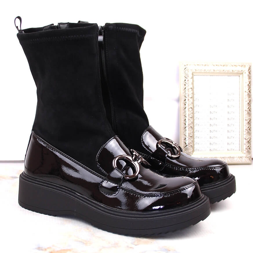 Details: Women's patent leather boots on the platform, insulated black Sabatina DM23-18N