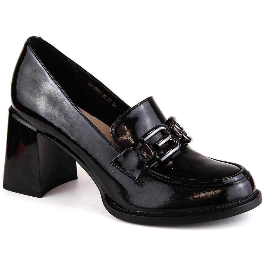 Leather patent leather women's shoes on a block heel black Vinceza 63509 are a great choice for women who value elegance and comfort. Made of high-quality natural leather, these stylish shoes impress with their timeless black color, which will work perfectly in various combinations, both in casual and formal styles.