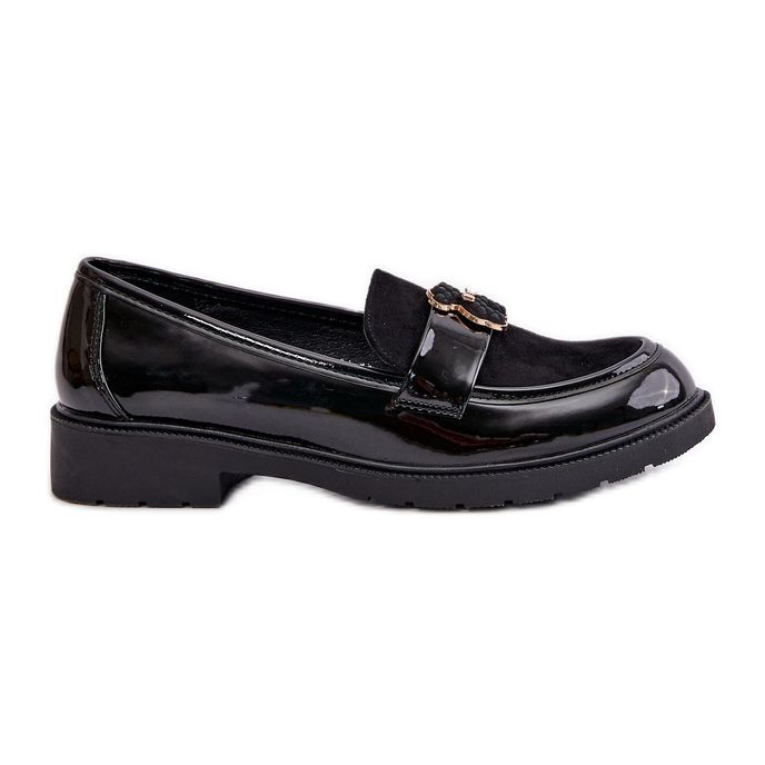 Women's moccasins varnished with Black Bear S. BARSKI HY42-339A is a great choice for women who value a combination of elegance and comfort. These stylish loafers, made of eco suede and eco leather combination, are distinguished by a unique detail in the form of a teddy bear pin, which gives them a charming and fashionable character.