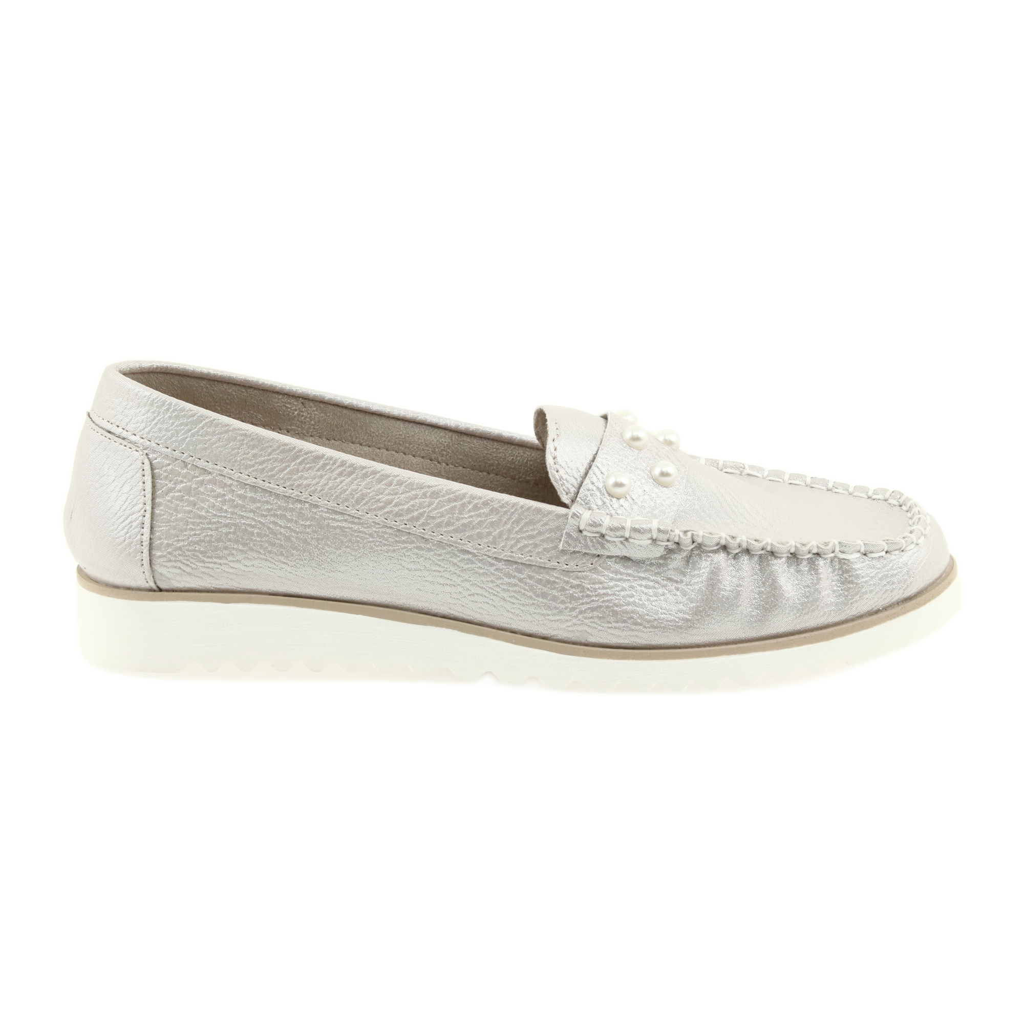 Sergio Leone - women's moccasins 725, pearly beige with white and silver accents