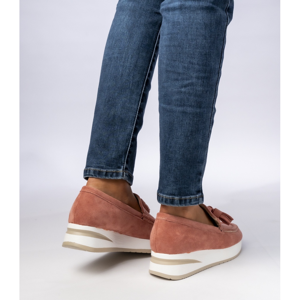 We present women's loafers with fringes in an elegant shade of powder pink - the perfect choice for women who value style and comfort! Made of high quality suede, these loafers are distinguished by softness and durability, which ensures comfort of wearing all day.