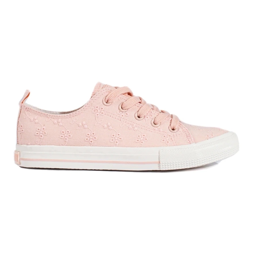 Delicate, feminine sneakers Big Star LL274224 in a shade of pale pink (L.pink) is an ideal proposition on a daily basis. The top made entirely of textiles is decorated with a subtle floral pattern and lace, thanks to which the classic sports cut gains a romantic character. The low 2.5 cm platform and softly built -in heel provide comfort throughout the day.