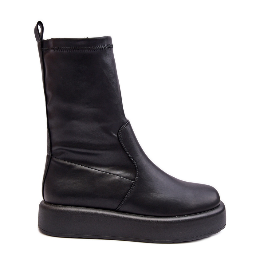 **Elegance and Comfort in Every Step - Women's Platform Boots, Eco-leather, Black Algedi**