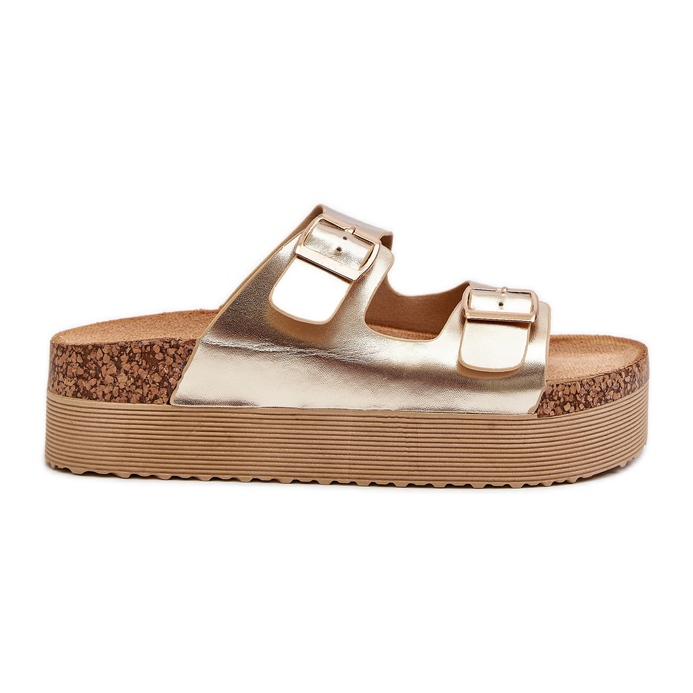 Discover exceptional style and comfort with the women's platform flip-flops with buckles from Lolpey in an elegant gold color. These fashionable flip-flops are set on a massive 5 cm platform, which provides not only a unique look but also comfort of wearing. The model is equipped with two adjustable straps, which allows for a perfect fit to the foot, and the buckles add chic to them.