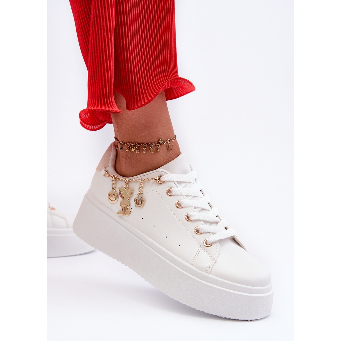 Inna marka Women's Platform Sneakers With Pendants, White Tivissa