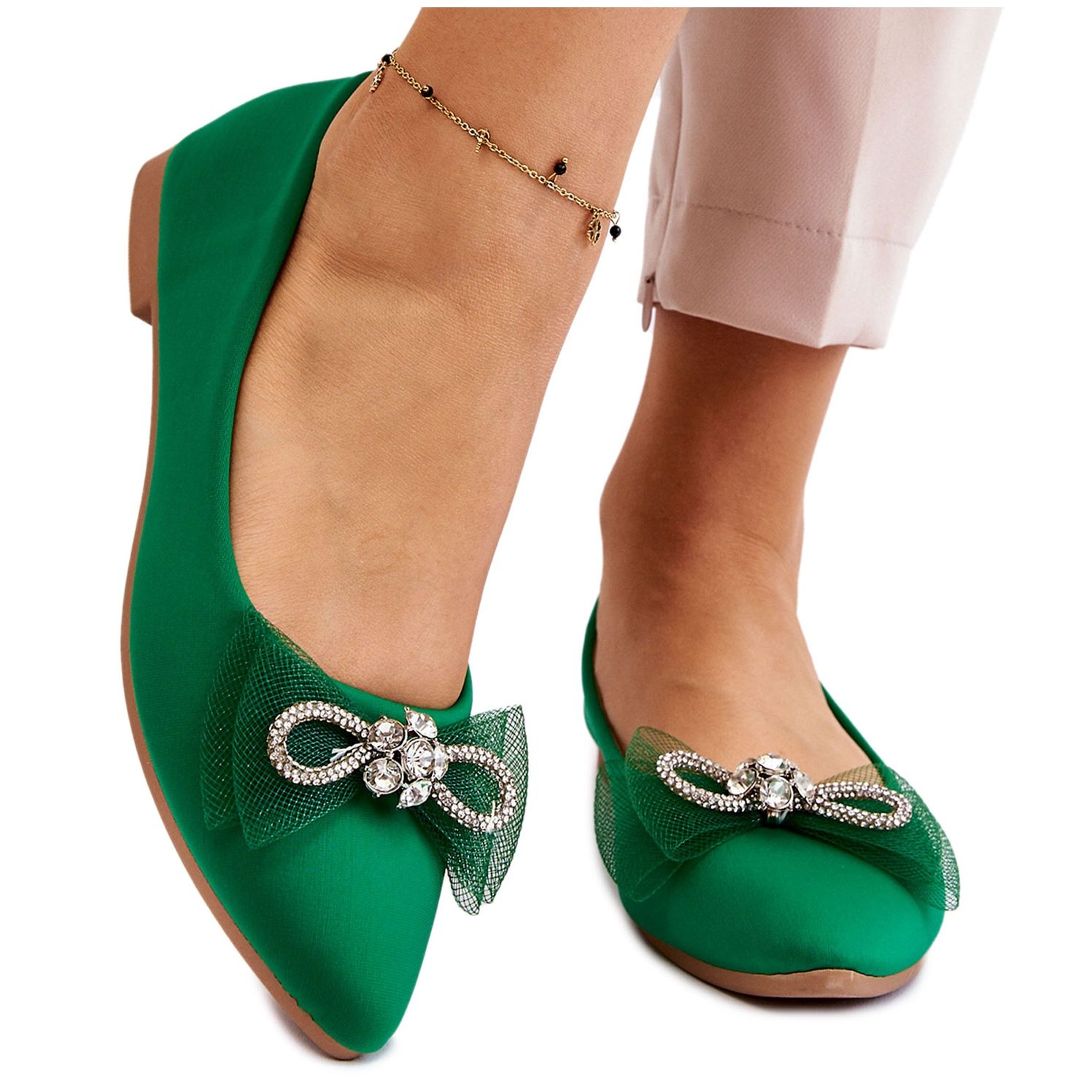 PS1 PS1 Women's Pointed Ballerinas With A Decorative Bow Green Luminous