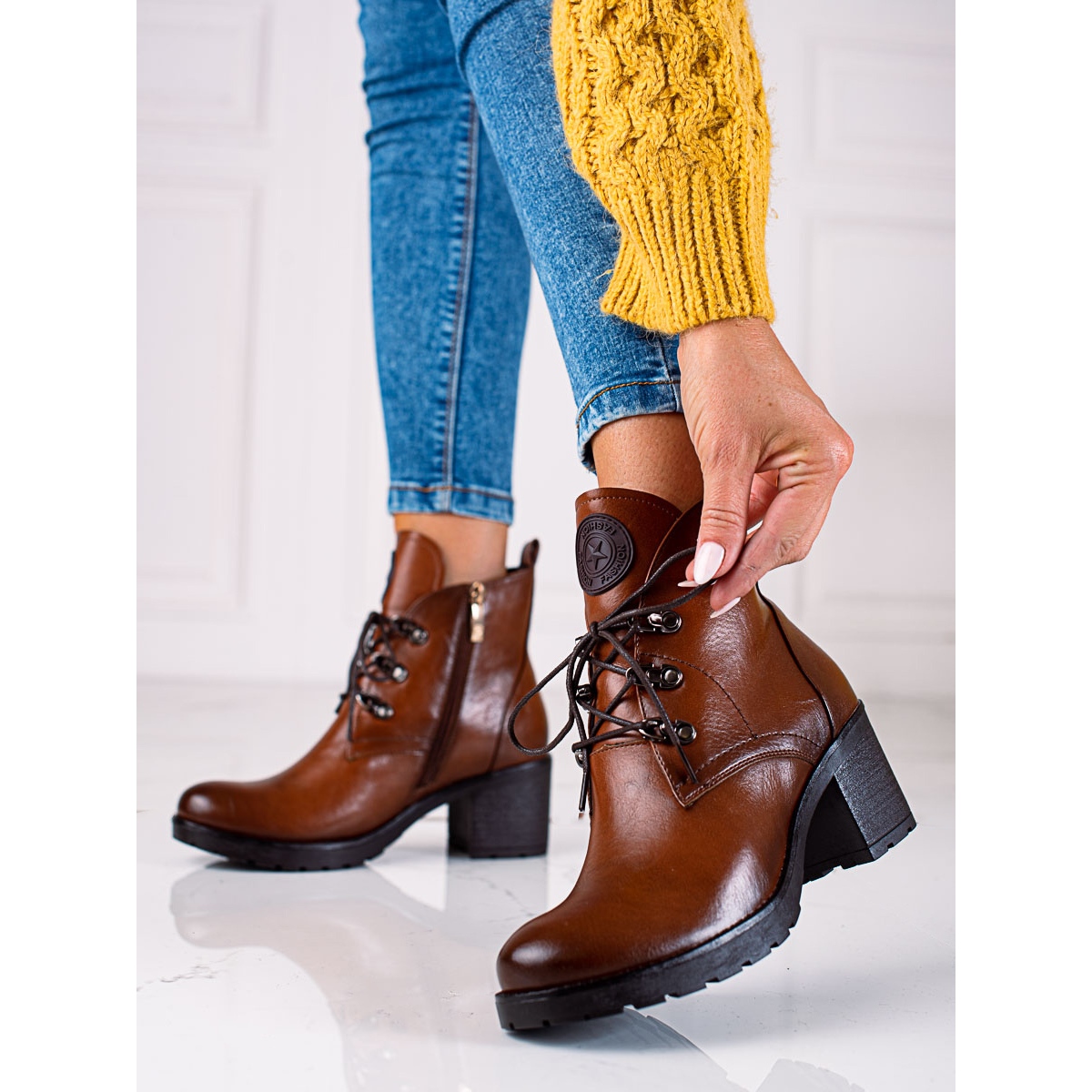 **Potocki women's high-heeled brown work boots - a perfect choice for autumn and winter**