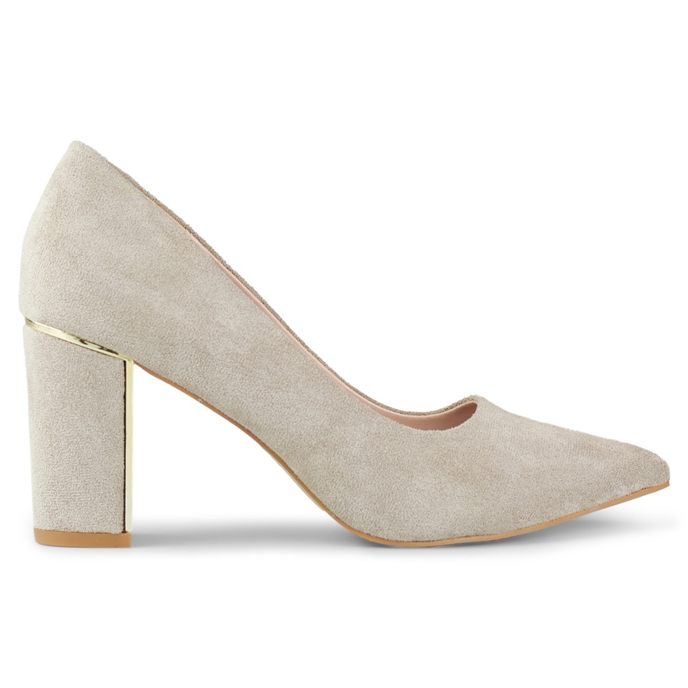 Beige women's pumps GD-Do112A-Be is an elegant must-have in every female wardrobe. Made of ecological suede, they combine fashionable design and ecological responsibility, which makes them a unique choice for conscious consumers. Their universal color means that they match many styles - from everyday to more formal ones.