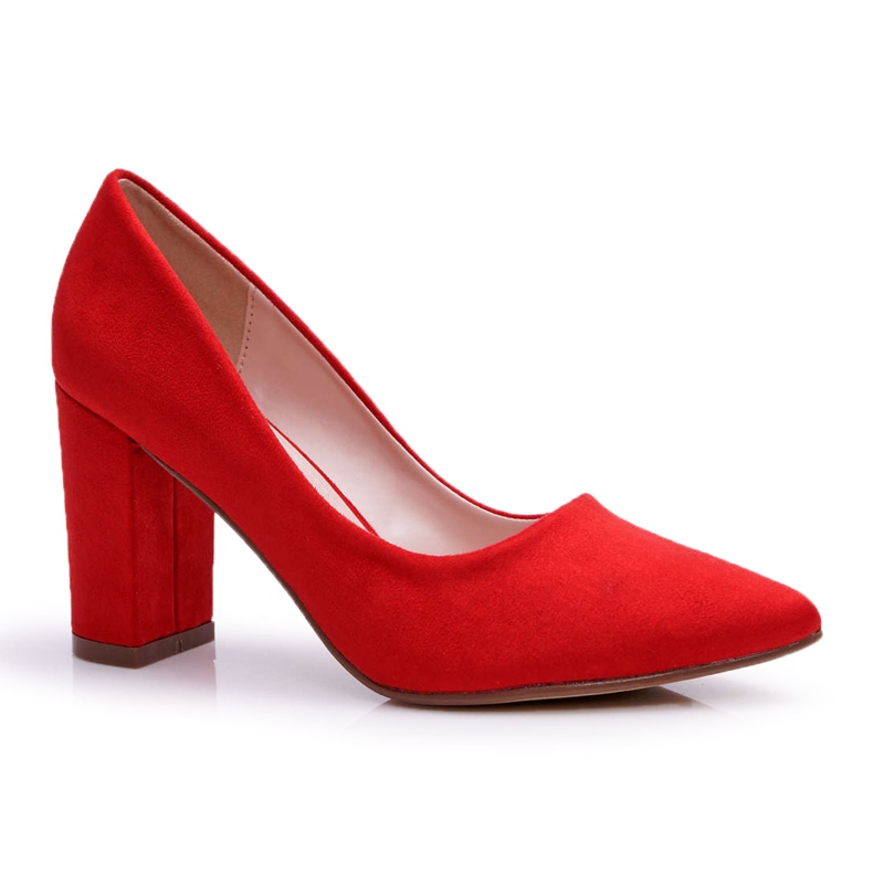 Red women's pumps on a block heel PS1 Florena are an ideal proposition for women who value elegance combined with comfort. Made of ecological suede, these shoes are a perfect complement to any styling - both for parties and business meetings.