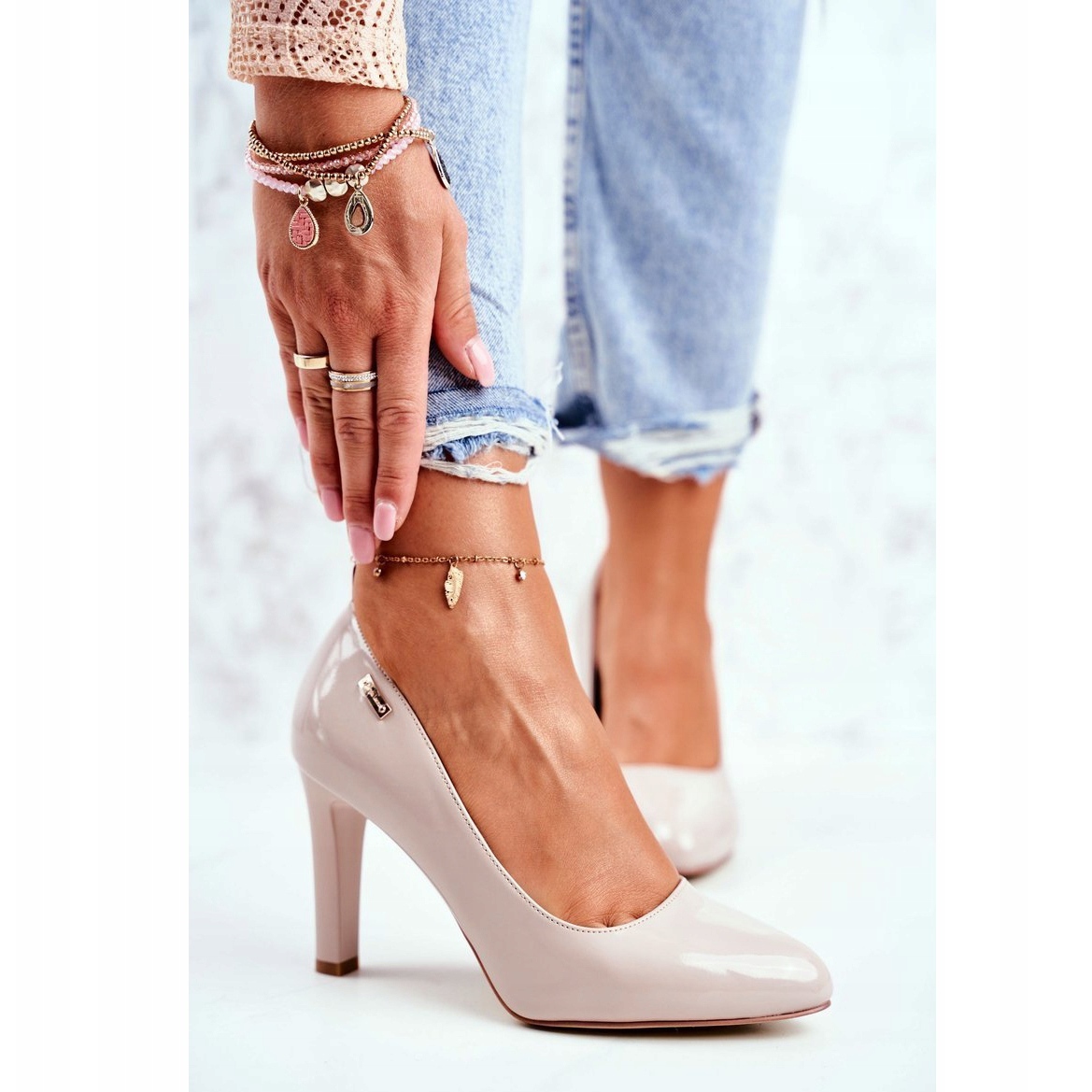 Sergio Leone women's pumps in a light gray shade are the perfect choice for every elegant woman. These patent shoes impress with their classic cut and almond toe, which makes them extremely stylish and feminine. Based on a stable, medium-height 9 cm high heel, they provide comfort and confidence when worn, regardless of the occasion.