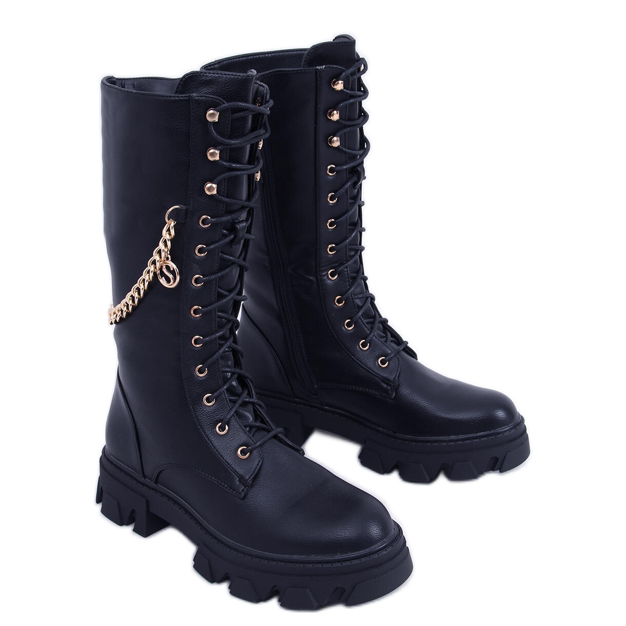 Women's Totah Black chain boots from BM are an absolute must-have for every fashionable woman! These lace-up boots with a high sole are distinguished not only by their stylish appearance, but also by their comfort of wearing. The style of the officers fits perfectly into the latest trends, and the addition of a gold chain gives them an elegant character.