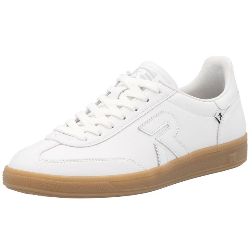 Rieker W2200 white shoes combine a sports and casual style, which makes them an ideal addition to many styles. A round nose and a low finish give them a modern character, and the beige sole contrasts well with the white upper, creating a harmonious whole.