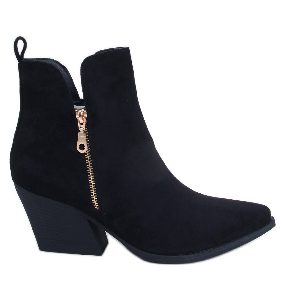 Black, suede cowboy boots are the essence of comfort combined with bold design. An eye-catching zipper adds elegance, while fashionable cutouts emphasize their unique character, allowing you to stand out from the crowd.