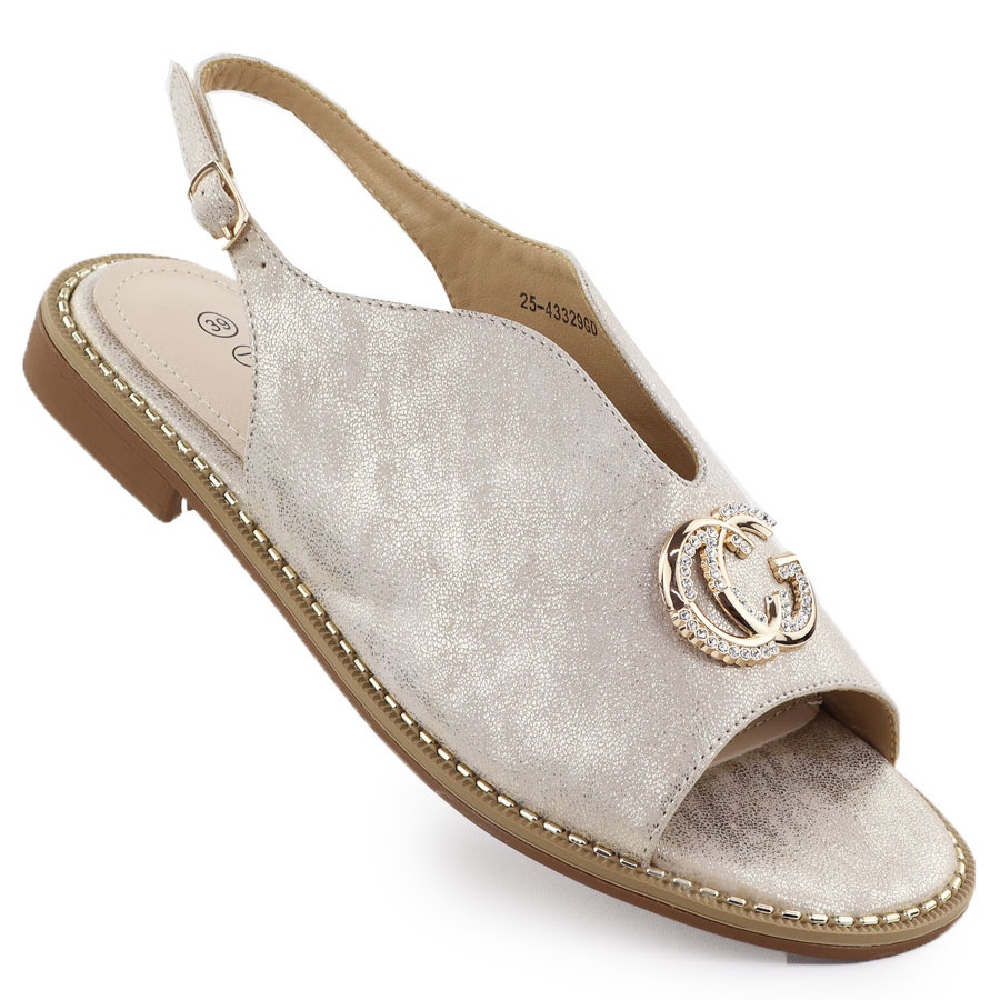 Women's sandals built up with the Golden 43329 decoration from the reputable Potocki brand is the perfect choice for women who want to combine elegance with comfort. These unusual sandals will certainly catch the eye, thanks to a spectacular, shiny ornament that will add splendor to any stylization, both on a daily basis and for special occasions.