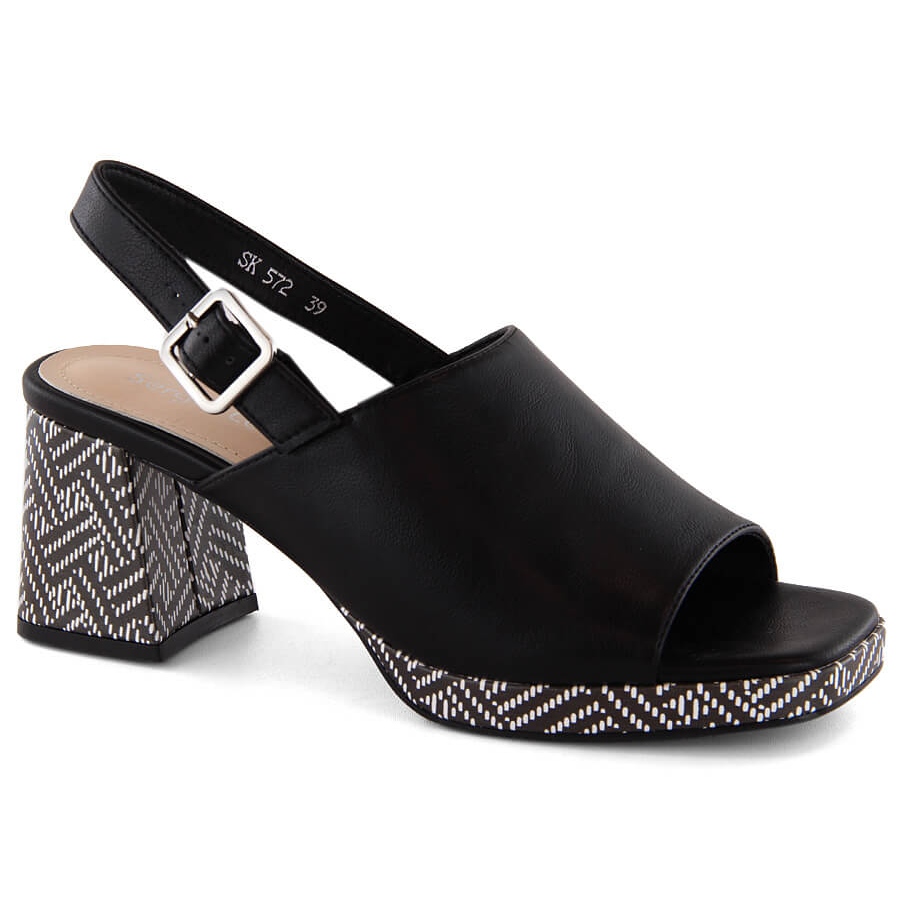 Women's sandals with a decorative heel, black, from the renowned Sergio Leone brand are an ideal choice for women who value elegance and comfort in every situation. Made of high-quality ecological leather, these classic sandals combine modern design with timeless style.