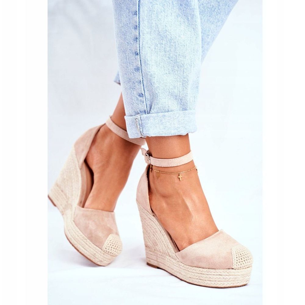 The sandals are set on a comfortable 12.5 cm wedge, which makes the legs look longer while providing the necessary stability. The upper made of suede eco-leather gives them an elegant look, and the classic, round toe adds subtlety.