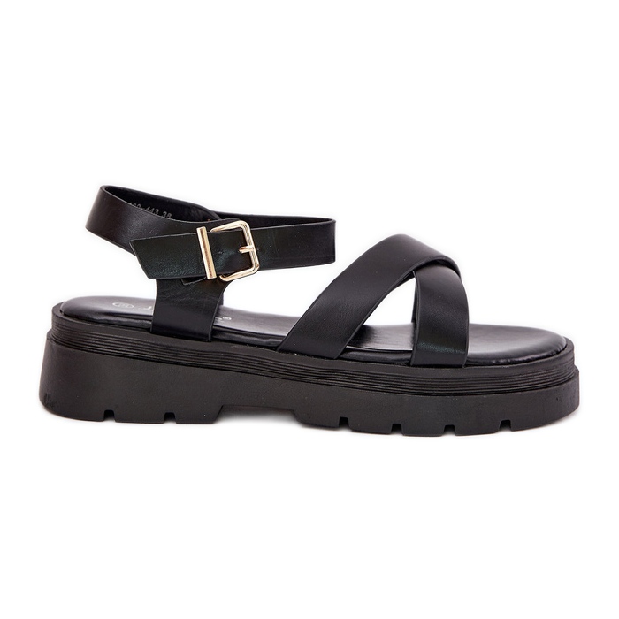 We present elegant women's sandals on the platform, which delight with their style and functionality. Made of high quality eco leather, these black sandals are an ideal proposition for warm days. Their minimalist cut with two intertwining straps at the front gives them a unique character, which is part of the latest trends.