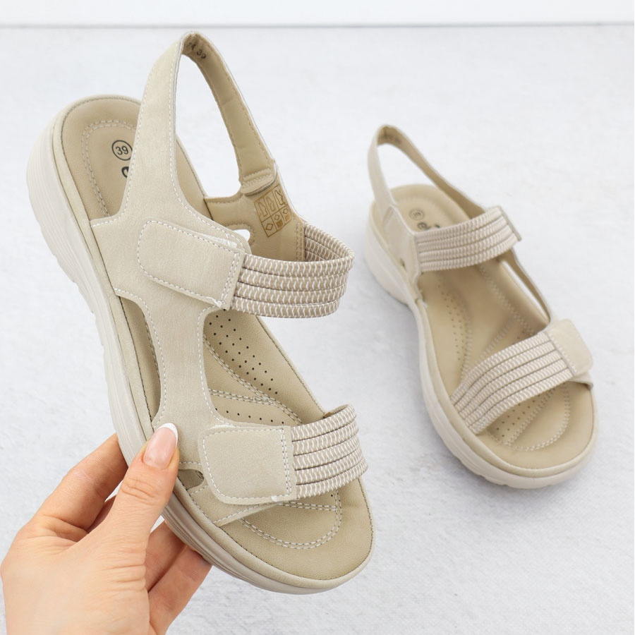 Women's sandals on the Evento 8874 platform in beige is the perfect choice for women who value comfort and style. Made of high quality ecological leather, these light sandals provide excellent ventilation and comfort in wearing. Thanks to the flexible straps and the Velcro fastening, they can be easily adapted to any stretch of the foot, which makes them perfect for any occasion.