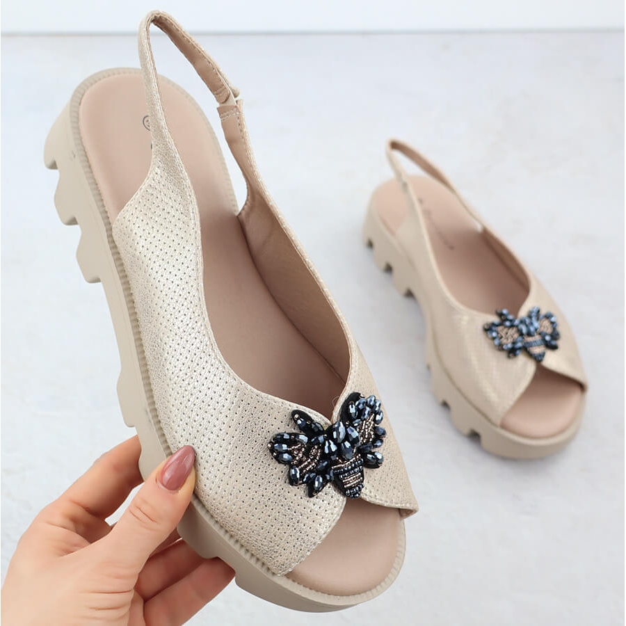 Details: Women's sandals on the platform perforated metallic golden potocki sz12610