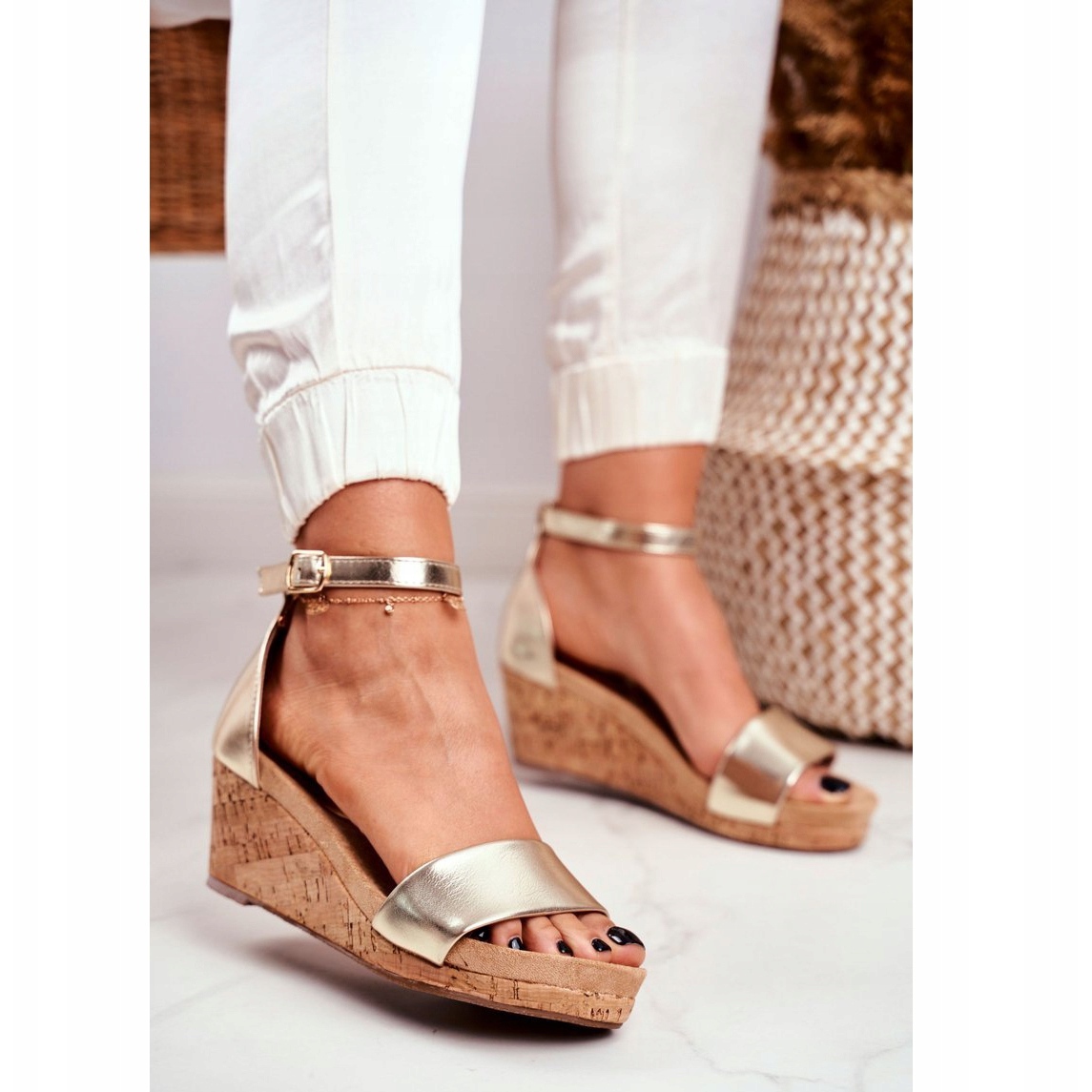 Women's Wedge Sandals Gold MarryMe are the perfect choice for women who are looking for a combination of elegance and comfort. Made of high-quality ecological leather, these sandals impress with their shiny gold color, which perfectly fits the latest trends. Their classic design means that they will match many styles - both everyday and for special occasions.