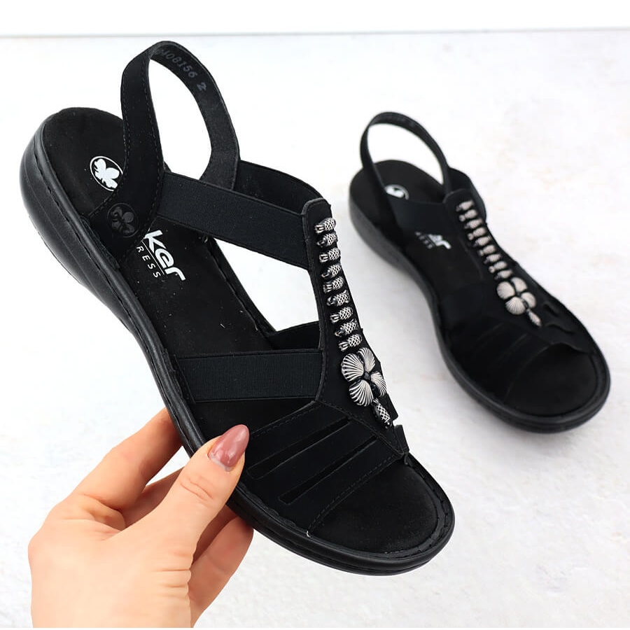 Details: Women's sandals Roman Black Rieker 60806-00