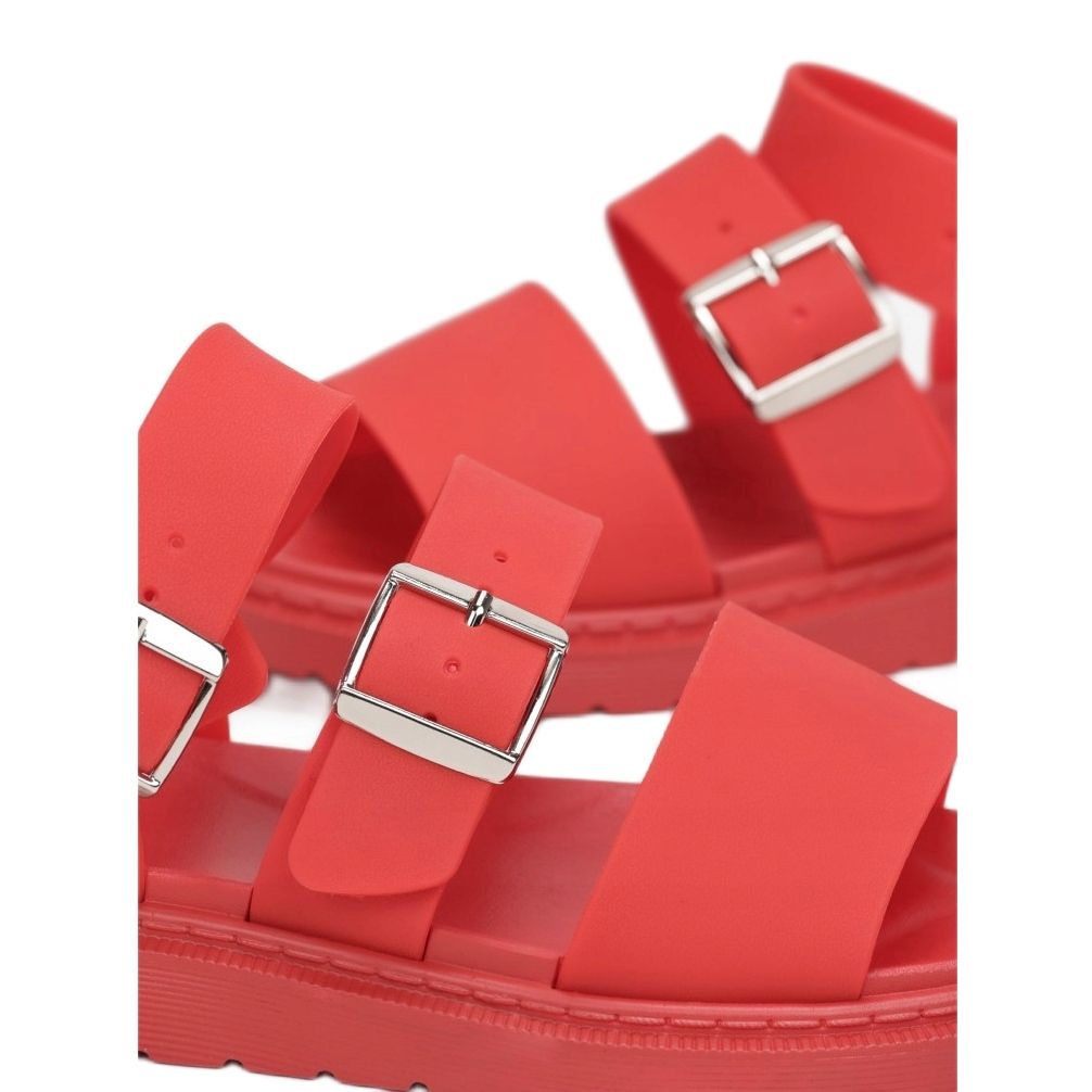 Modern, sports sandals vices 2212-64 in an intense red color combine comfort with a fashionable look. The low 3.5 cm platform gives stable support, and the protector and grooves of the soles ensure adhesion during everyday use. The model made entirely of rubber plastic is light, resistant to dirt and easy to care.