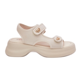 Women's Evento sandals in a beige shade is a perfect combination of comfort and elegance. Made of high quality textile material, they offer a great fit thanks to the double fastening of the Velcro. Two subtle golden details give them a unique style, thanks to which they become a great choice for various occasions.