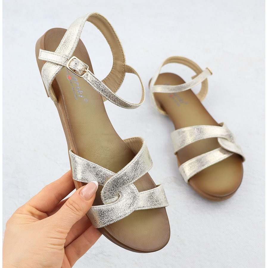 The buckle fastening allows you to easily fit to the foot, which further increases wearing comfort. The metallic finish of sandals in shades of gold gives them elegance and makes them a perfect complement to both summer walks and evening outings.