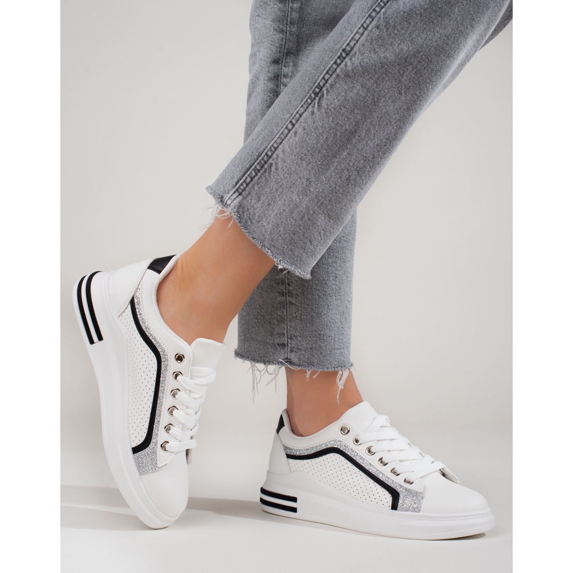 Discover the Shelovet women's sneakers on a high platform, which will surely become your favorite everyday footwear! These white sneakers combine sporty style and fashionable design, perfectly fitting into future trends.