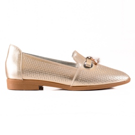 Made from the highest quality materials, Goodin loafers not only look great but are also durable. The gold color is sure to attract attention and add shine to any outfit. Thanks to their careful finishing, these shoes fit perfectly to the foot, offering comfort during everyday wear.