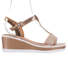 SHELOVET sandals in gold are not only an eye-catching design, but also a guarantee of the highest quality of workmanship. Manufactured with attention to detail, they are comfortable to wear thanks to the use of soft inserts and an ergonomic shape. The golden color gives them a luxurious character, making them a perfect addition to both day and evening styles.