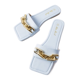 Women's slippers for the perfect summer footwear! Light, airy, comfortable - every step will be a pleasure in them! Blue flip-flops bring to mind the sea breeze that refreshes you in the summer heat - from light heavenly blues, through turquoise to navy blue and white stripes. Rubber slippers, perfect for a seaside boulevard, on the beach or by the swimming pool. Stylish wedge slippers will enrich and introduce a summer mood in everyday styling. Undisputed queens of summer promenades - comfortable and light flip-flops is an absolute must-have for every woman. Decorative buckles, glitter decorations or fancy bows - match the blue slippers to your original style.