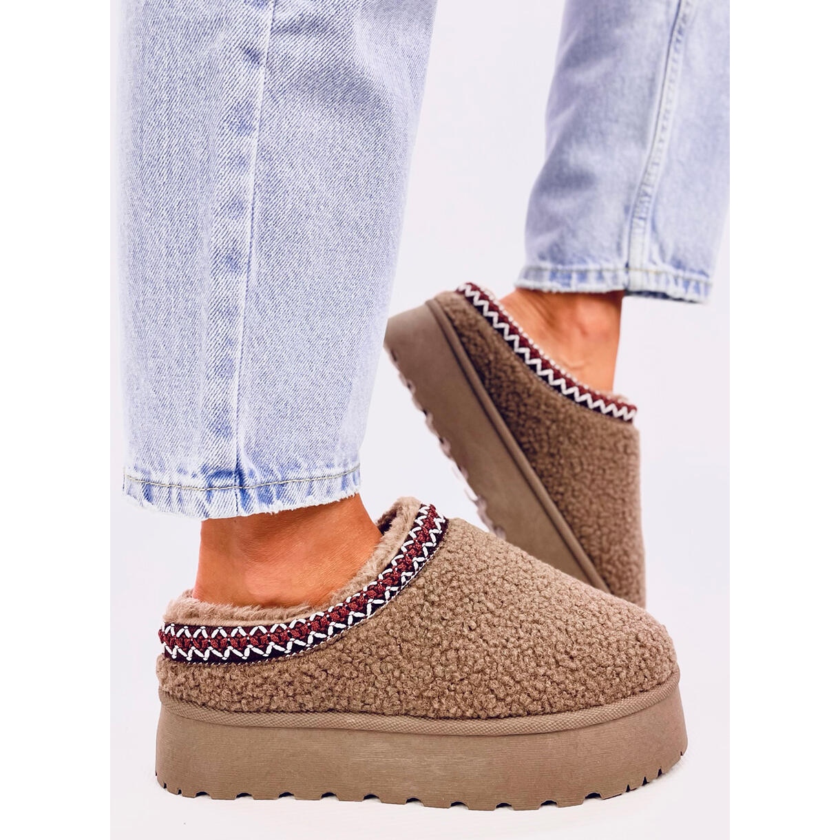 Get ready for the upcoming winter days with our short khaki-brown women's snow boots! These stylish platform shoes are an absolute hit of this season. Made of material with a unique texture of the lamb, they perfectly emphasize the winter character of any stylization.