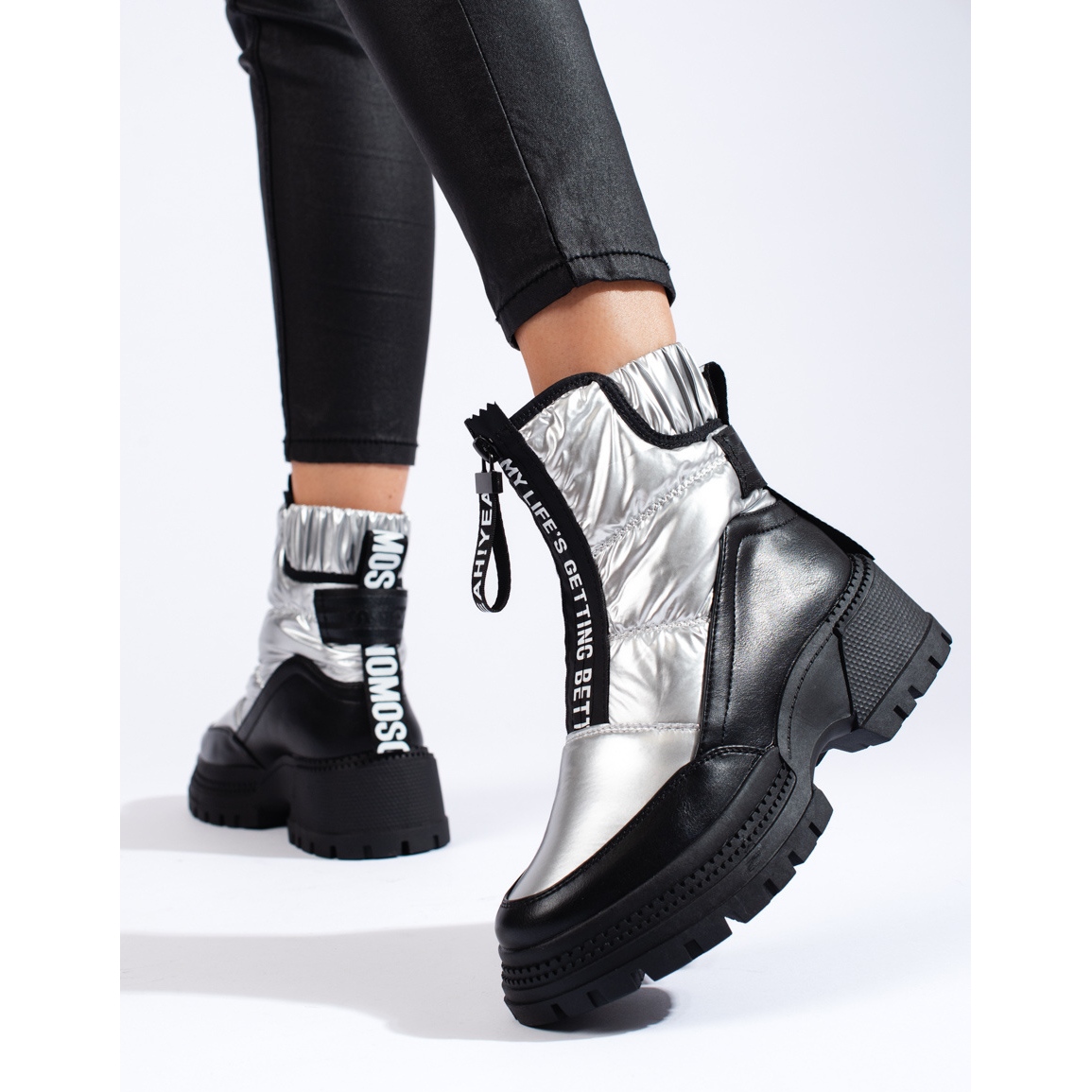Silver women's snow boots on Shelovet platform - stylish, warm and comfortable for the autumn/winter season