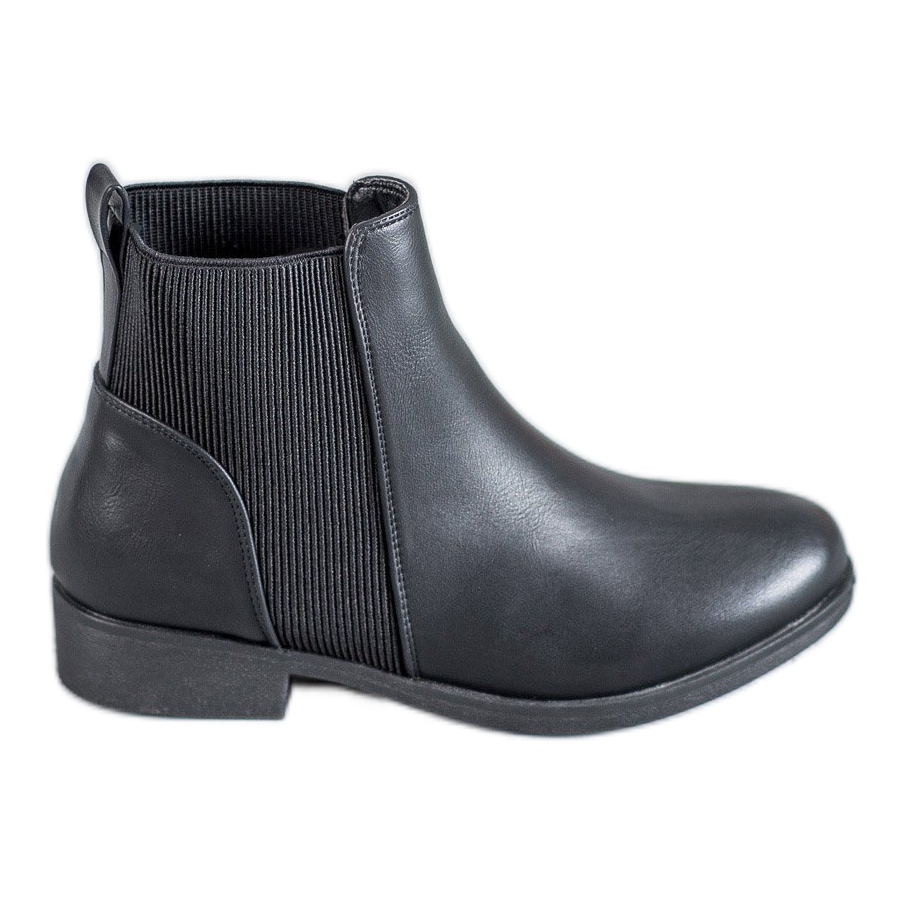 The boots are made of smooth imitation leather, which gives them a modern look and is easy to maintain. Additionally, the elastic insert around the ankle holds the foot securely, and the decorative loop at the back adds a subtle charm.