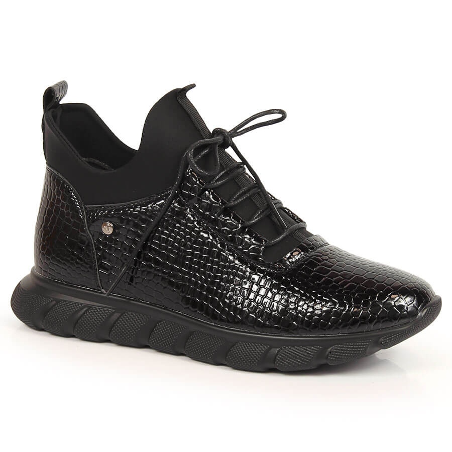 We present women's patent slip-on boots in an elegant crocodile pattern from the renowned manufacturer Vinceza! These unique shoes, available in classic black, perfectly fit into the latest fashion trends, while offering comfort and functionality.
