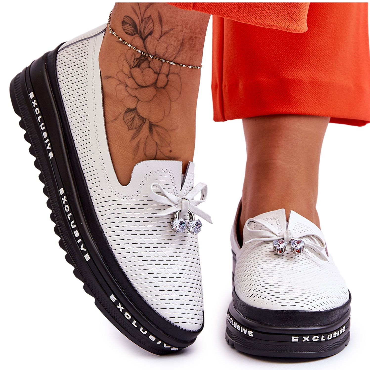 Elegant and comfortable sneakers that are perfect for the spring -autumn season. The Raven model is a slip -in shoes made of natural leather, embedded on a delicate wedge (4.5 cm) with the platform - they provide a stylish look while maintaining comfort. A subtle bow and decorative heart -shaped crystals add a feminine character on the front.