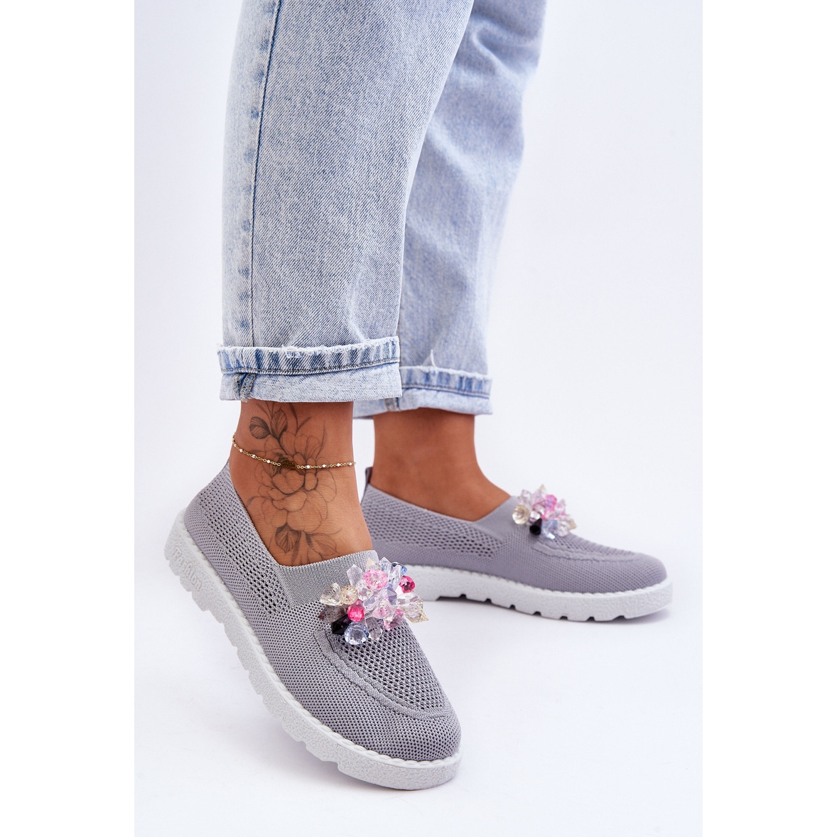 Details: PM1 Women's Slip-On Sneakers With Stones Gray Simple grey