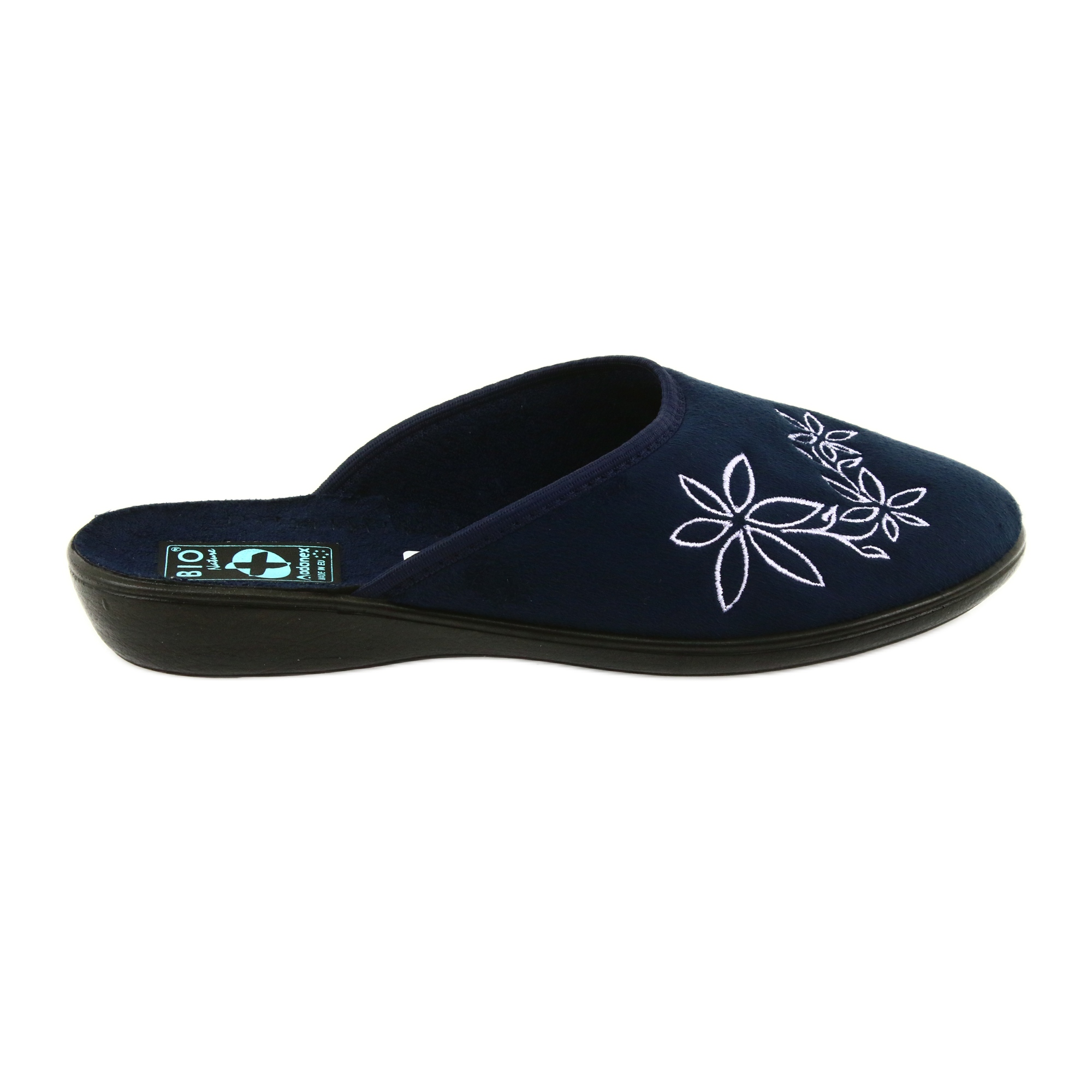 Women's slippers Adanex 23931 in navy blue are a great option for women looking for comfort and style in everyday home footwear. Made of high-quality cotton suede knit, these slippers are distinguished not only by their durability, but also by their pleasant touch. Their elegant navy blue color has been diversified with delicate floral embroidery, which adds charm and makes them fit perfectly with various home styles.