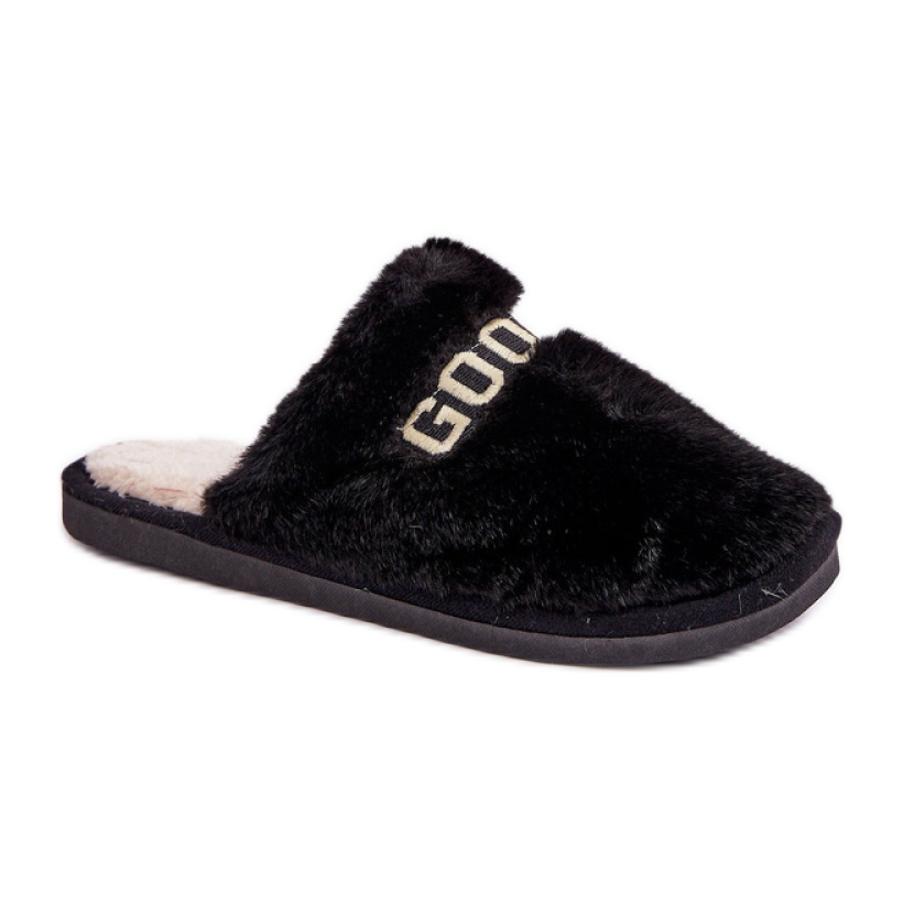 Discover the extraordinary comfort and style thanks to women's soft fur in a classic black color. These unique slippers provide not only warmth, but also an elegant look, thanks to the decorative inscription that gives them a modern character.