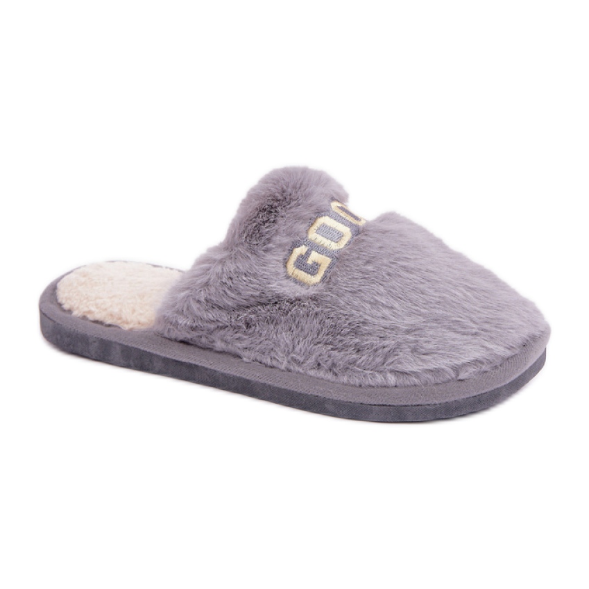 Details: Women's slippers made of soft fur grey