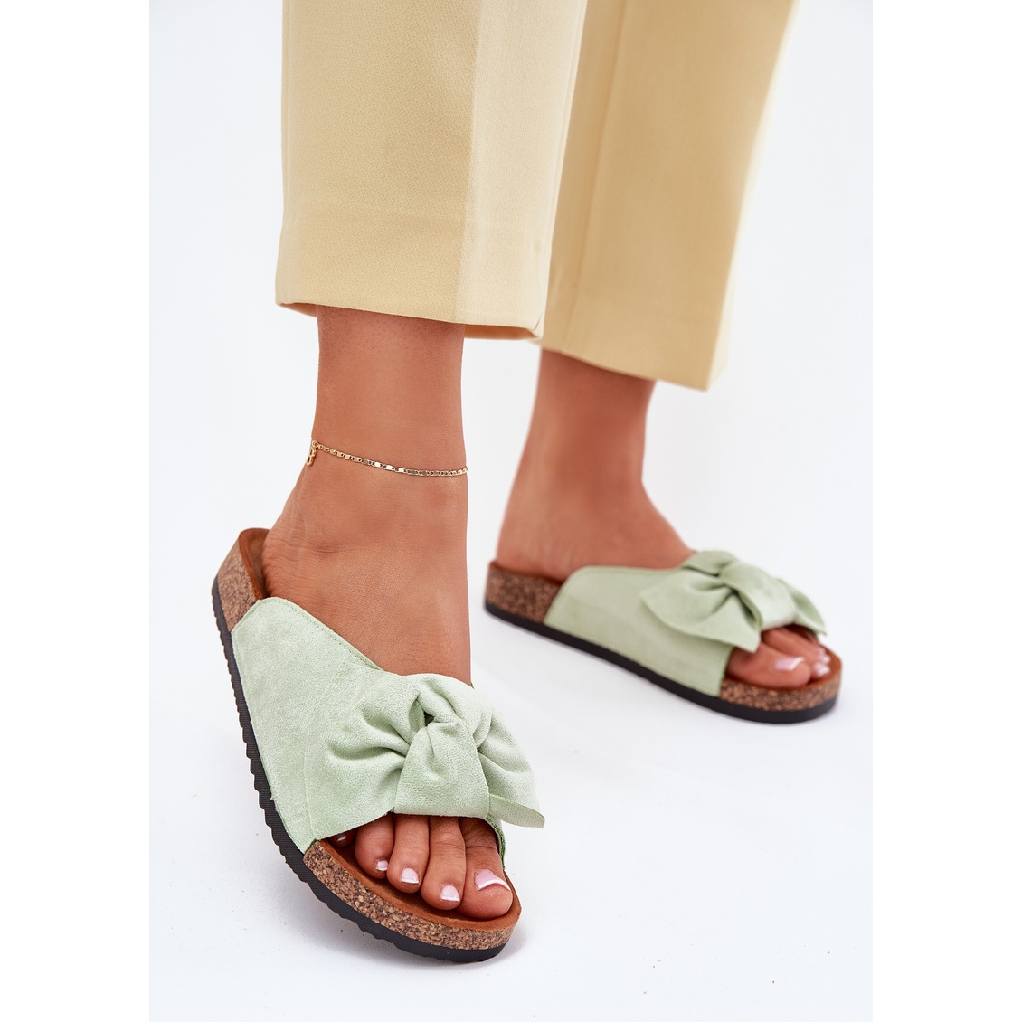 Inna marka Women's slippers on the cork sole with a mint bow green