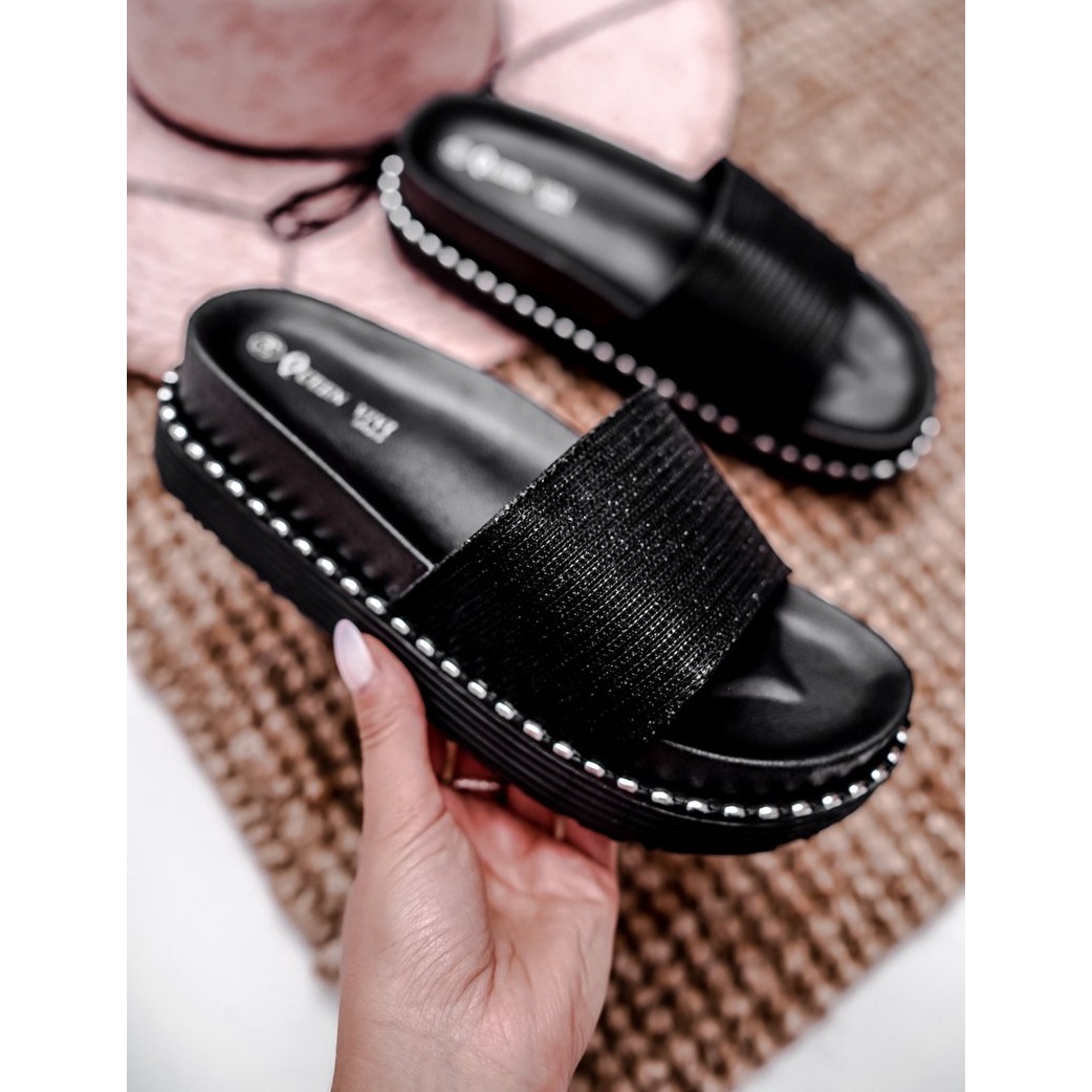 Inna marka Women's Slippers on the Platform Black Silver Venima